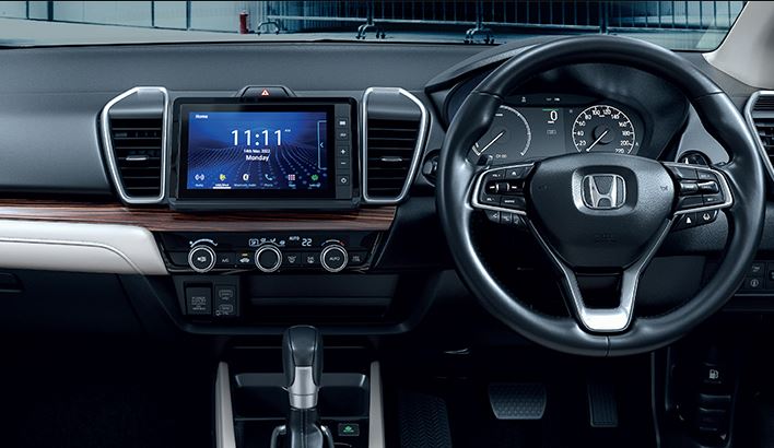 There is a new two-tone Ivory and Black colour theme inside the City Hybrid which makes use of an eight-inch infotainment system with Honda Connect and smartwatch integration. There are eight speakers all around the cabin of the car.