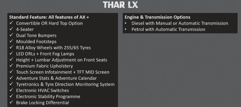 Thar to now also boast of a completely new petrol engine. The mHawk diesel engine has also been upgraded.