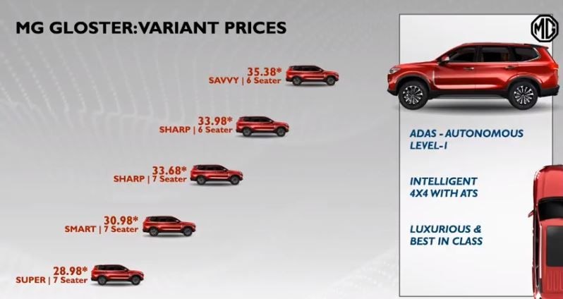 - Gloster from MG Motor gets a starting price of ₹28.98 lakh (introductory, ex showroom).
