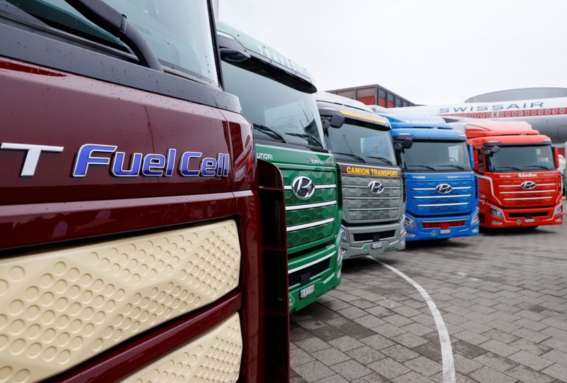 South Korean carmaker Hyundai on Wednesday presented the first seven hydrogen-powered trucks to customers in Switzerland, out of 50 such vehicles scheduled this year to bring zero-emission commercial vehicles to European roads.