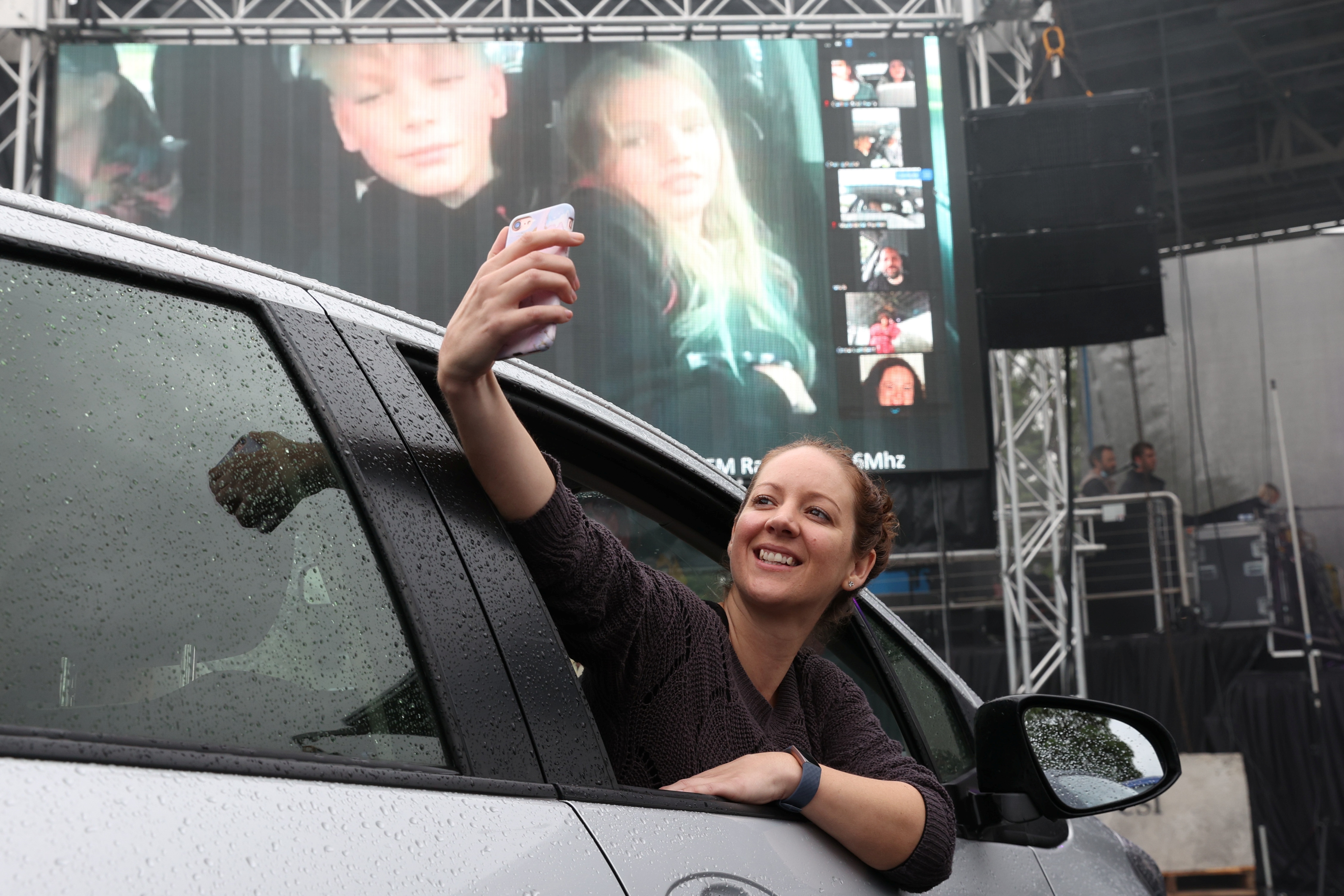 To ensure physical distancing, audience members were not allowed to leave their cars but could tune into an FM band on their radios to get full high-definition sound, or simply wind down their windows despite the rain.