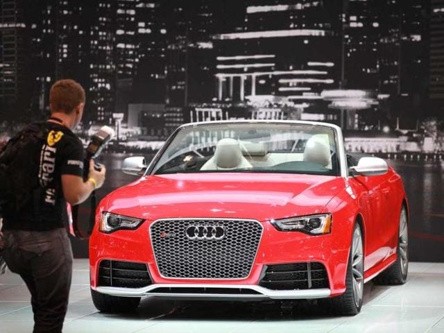 A visitor looks the Audi RS5 during the media preview at the Chicago Auto Show in Chicago. (AFP Photo)