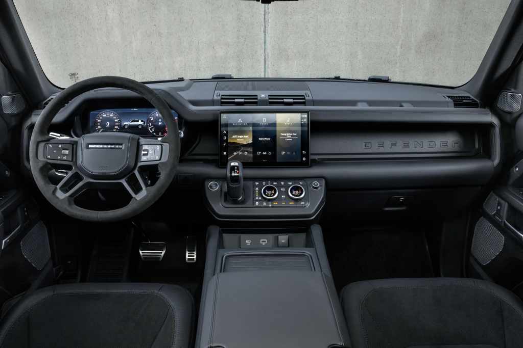 Indise, there is Ebony Windsor black leather upholstery and Alcantara-wrapped steering wheel. It also gets a new curved centre 11.4-inch touchscreen appearing in the options catalog for the Defender line.