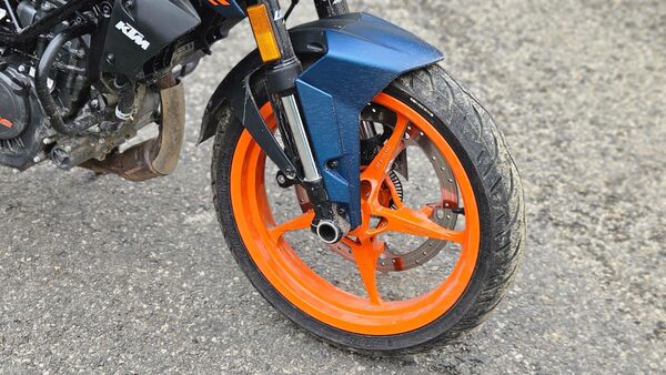 The brakes are more than enough. Remember that they are derived from the larger Dukes only. So, this 160 cc motorcycle uses a 320 mm disc in the front and a 230 mm disc at the rear. They provide ample amount of stopping power, bite, and feedback. There is dual-channel ABS on offer that is switchable for the rear wheel. The ABS is calibrated wonderfully; it is always working in the background.