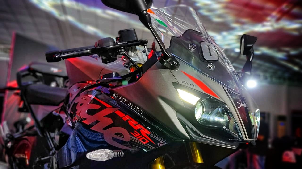 TVS Motor has launched the 2021 Apache RR 310 in India at a starting price of ₹2.60 lakh. It will come with host of new features, tweaked suspensions setup and a new Race Replica Graphics for a sporty appearance. (Photo credit: Prashant Singh/HT Auto)